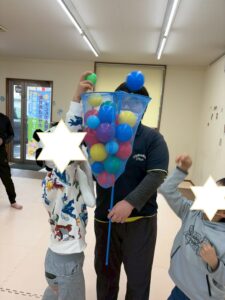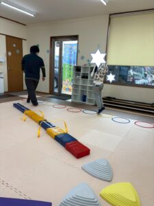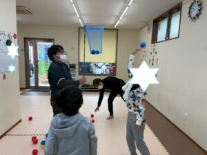 午前中の活動は、⛄ストレッチ⛄玉入れ⛄サーキット運動を行いました
