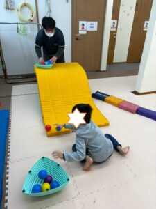 ボール転がしはお友だちと楽しみましたよ(*^^*)