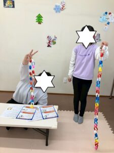 みんな集中して、長い輪飾りが出来ましたよ!