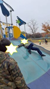 滑り台や、色々の遊具や、シャボン玉で遊んできました😊