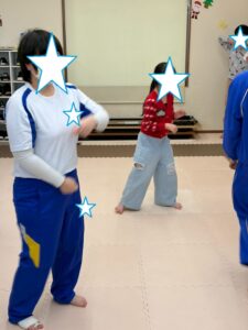 活動ではバナナくん体操やゴーストップで体を温めて~