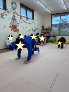 午後の活動でもサイコロを振って動物歩きをしたり、